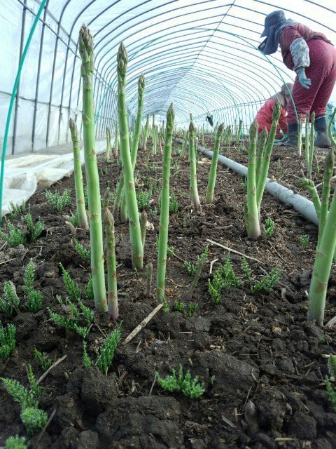 ハウスの中で大切に育てられたアスパラは